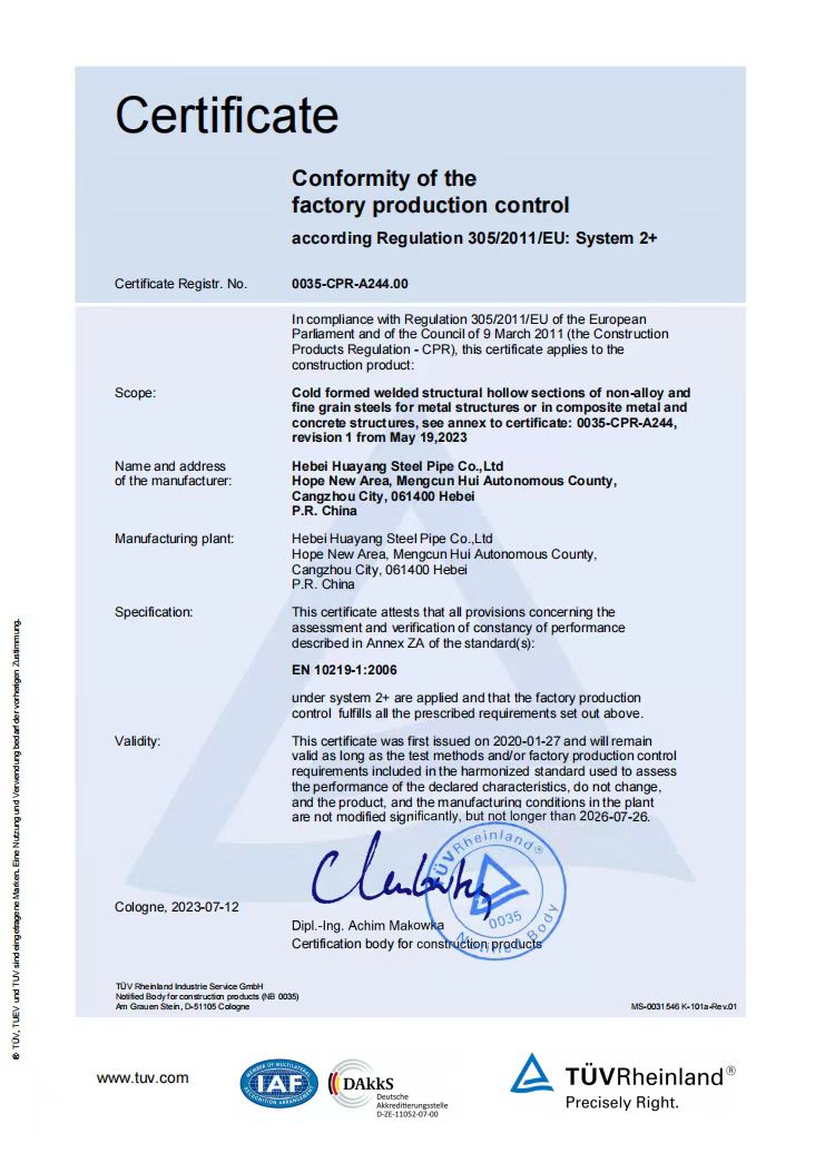 河北華洋鋼管有限公司公司創(chuàng)建于2005年,注冊(cè)資金5億元,公司占地面積1000余畝,固定資產(chǎn)12億元,年銷售收入近100億元,現(xiàn)有員工600余人。“華洋牌"高頻直焊鋼管被評(píng)為“河北省名牌產(chǎn)品”,年生產(chǎn)能力可達(dá)260萬(wàn)噸,2024年河北華洋鋼管有限公司榮獲河北省百?gòu)?qiáng)民營(yíng)企業(yè)(69位),河北省百?gòu)?qiáng)制造業(yè)(57位)榮譽(yù)稱號(hào)。